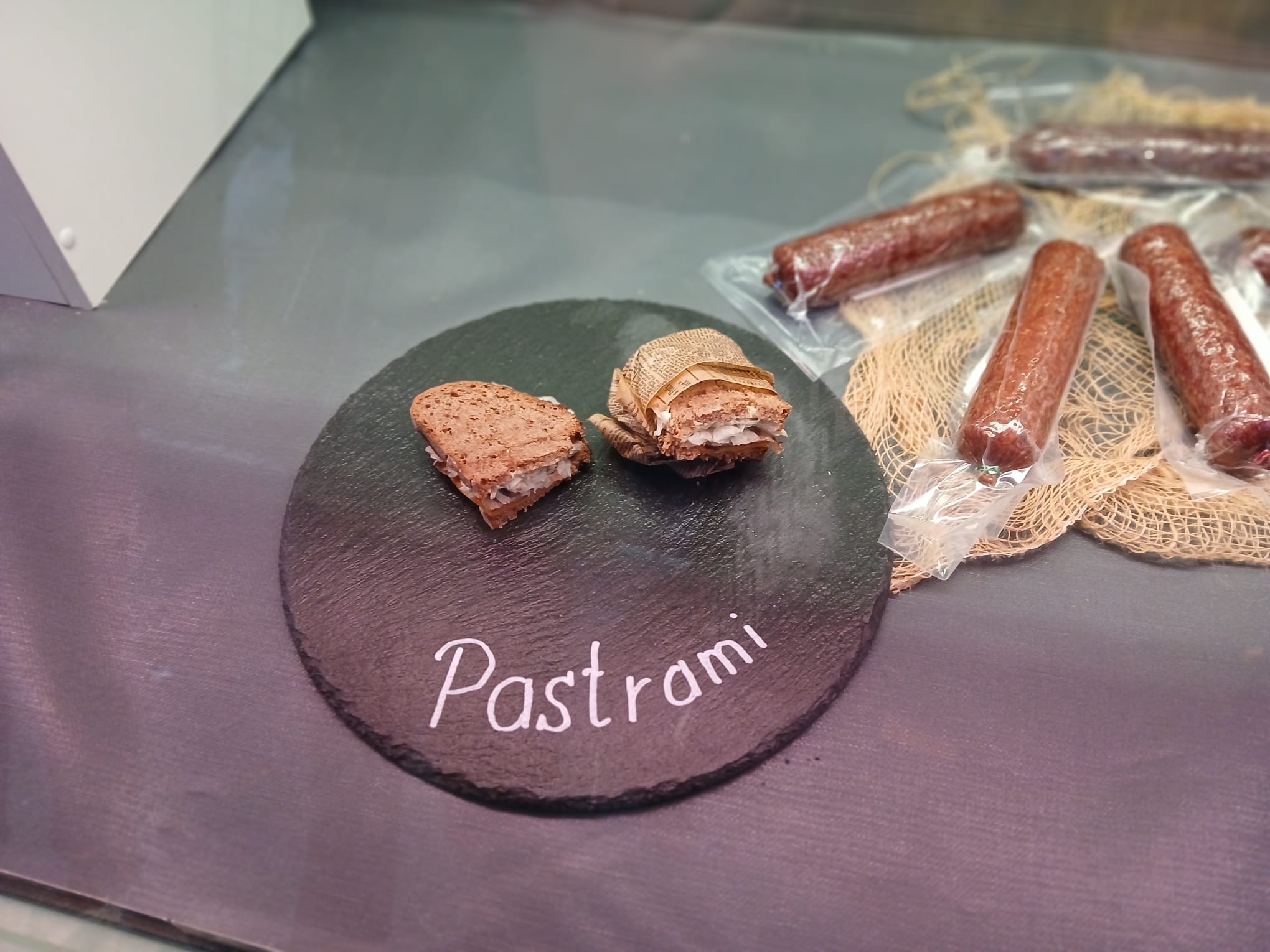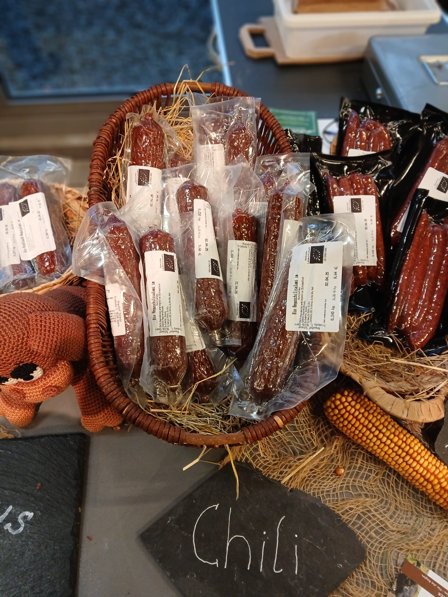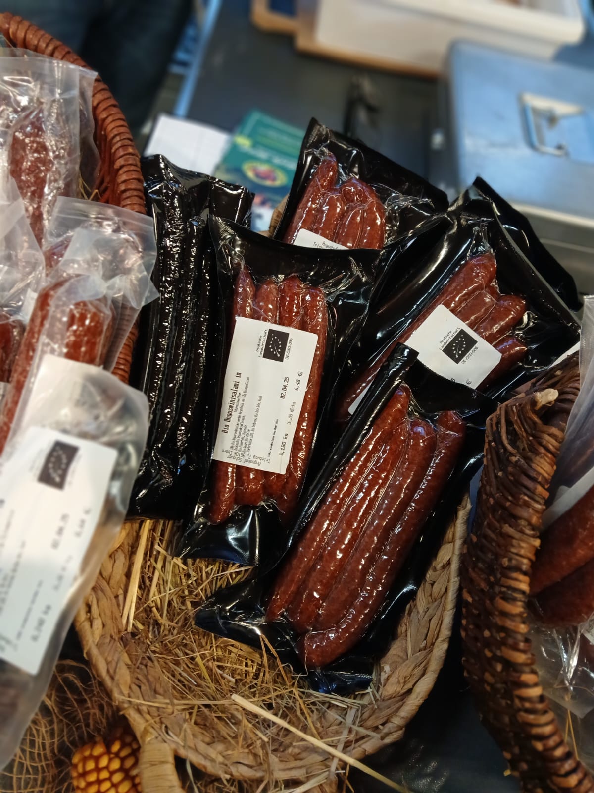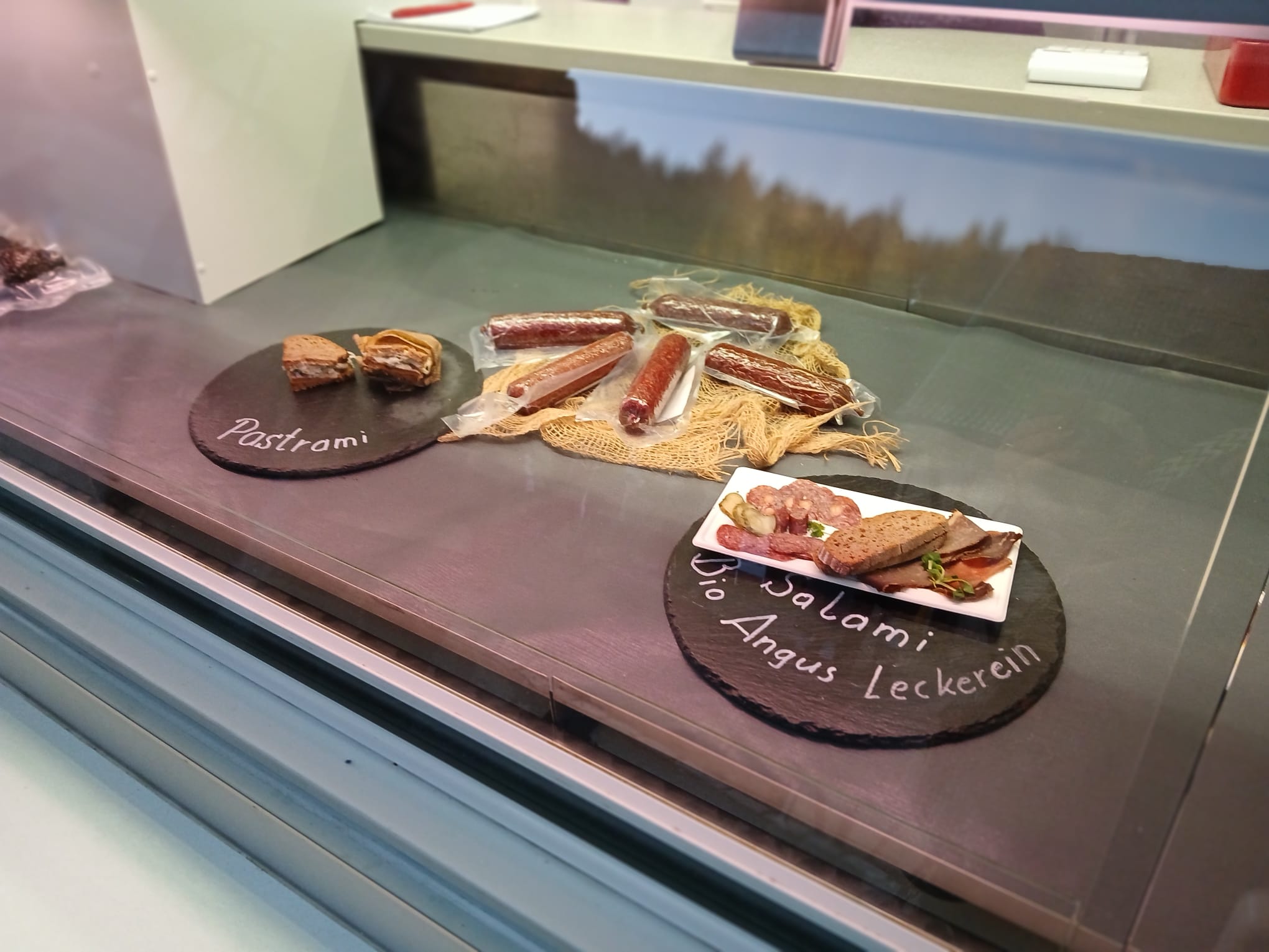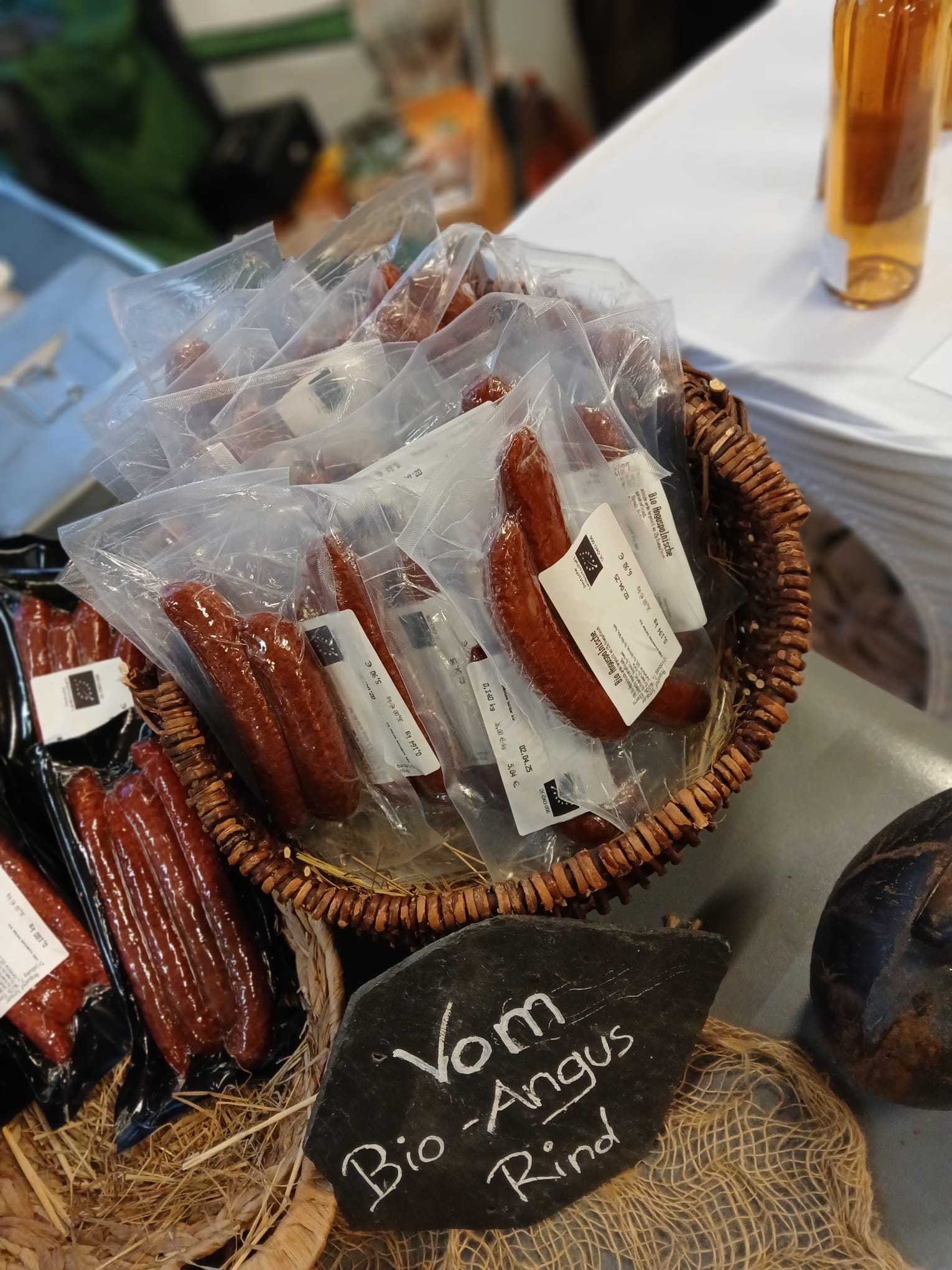 Während wir die Besucher im Sonnenschein mit leckeren Pastrami-Sandwiches und Viererlei vom Angusrind mit leckeren Bio-Bauernbrot verköstigten 🍴, ging bei Rainer der Verkauf unserer Bio-Angus Salami richtig rund.